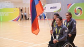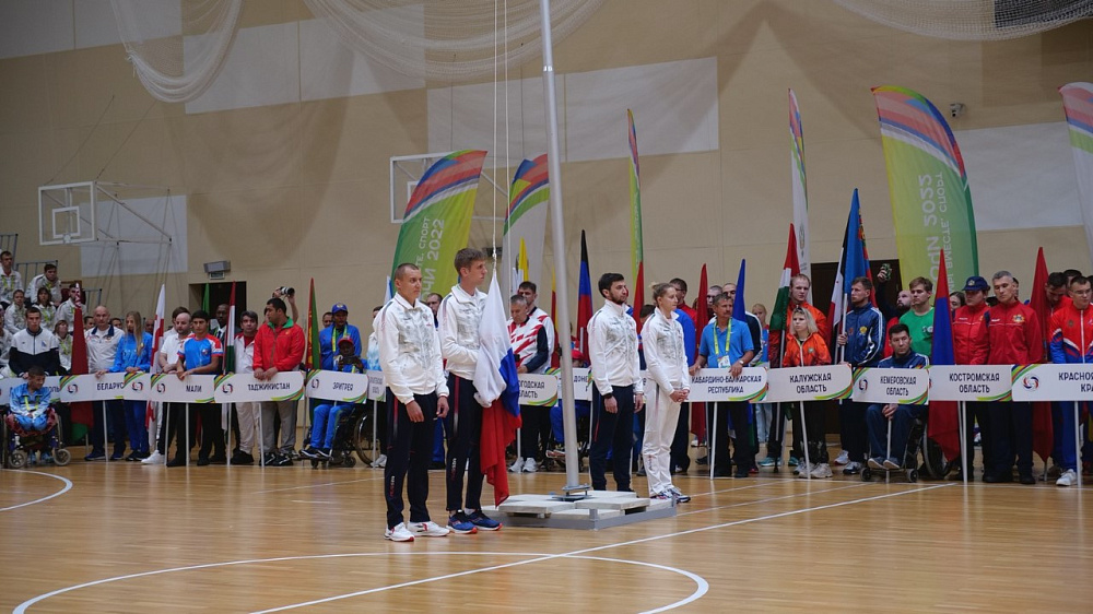 После оглашения приветствия главы государства состоялась торжественная церемония выноса Государственного флага Российской Федерации. Почетную миссию выполнили 3-кратная чемпионка Паралимпийских игр по плаванию спорта лиц с ИН Валерия Шабалина, 2-кратный чемпион Паралимпийских игр по легкой атлетике спорта лиц с поражением ОДА Дмитрий Сафронов, чемпион Паралимпийских игр по футболу лиц с заболеванием ЦП Заурбек Пагаев и чемпион Паралимпийских игр по легкой атлетике спорта слепых Антон Кулятин.