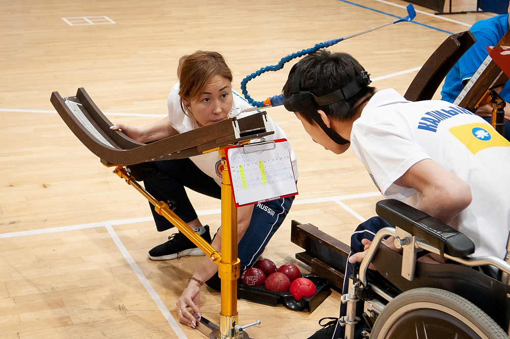 Бочча - паралимпийский вид спорта, в котором принимают участие спортсмены с заболеванием церебральным параличом. Этот вид спорта начал развиваться в 1980 году, а в программу Паралимпийских игр вошел в 1984 году. В игре используют 12 кожаных мячей (весом 275 грамм и окружностью 270 мм.) и один стартовый мяч - "Джекбол". Цель игры - при броске приблизить свой мяч к "Джекболу", как можно ближе по отношению к мячу соперника. Размер площадки 6х10 м. Игроки производят броски только сидя на колясках в своих боксах. Спортсмены, которые по степени поражения опорно-двигательного аппарата не могут бросить мяч, используют специальные приспособления (направляющие) и ассистента. Несмотря на видимую простоту игры, в поединках присутствует азарт, тактика и стратегия. На XVI Паралимпийских летних играх в г. Токио (Япония) Дарья Адонина, Сергей Сафин и Иван Фролов завоевали бронзовые медали в парах ВС4.