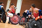 Регби на колясках – это игра между двумя командами по четыре игрока в каждой. В 1996 году этот вид спорта дебютировал на Паралимпийских играх в Атланте. Целью каждой команды является набор игроками очков путем касания или пересечения линии ворот соперника мячом, над которым осуществляется контроль. Возможны следующие действия с мячом: передача, бросок, удар, крученый удар, дриблинг или передвижение с ним в любом направлении, ограниченном действующими правилами. Команда, набравшая большее количество очков к окончанию игры, признается победителем.