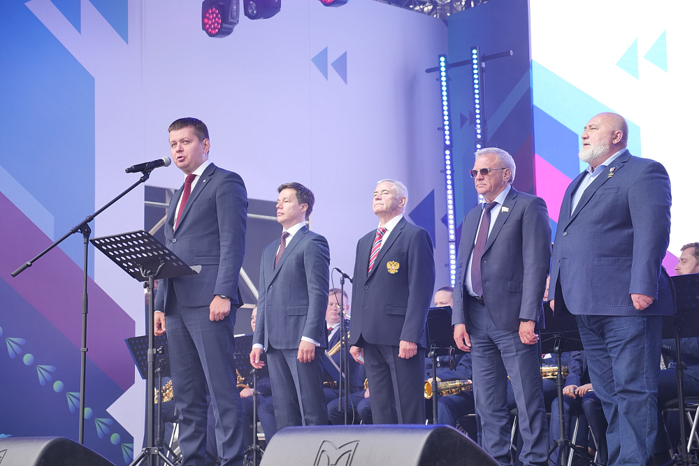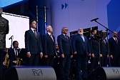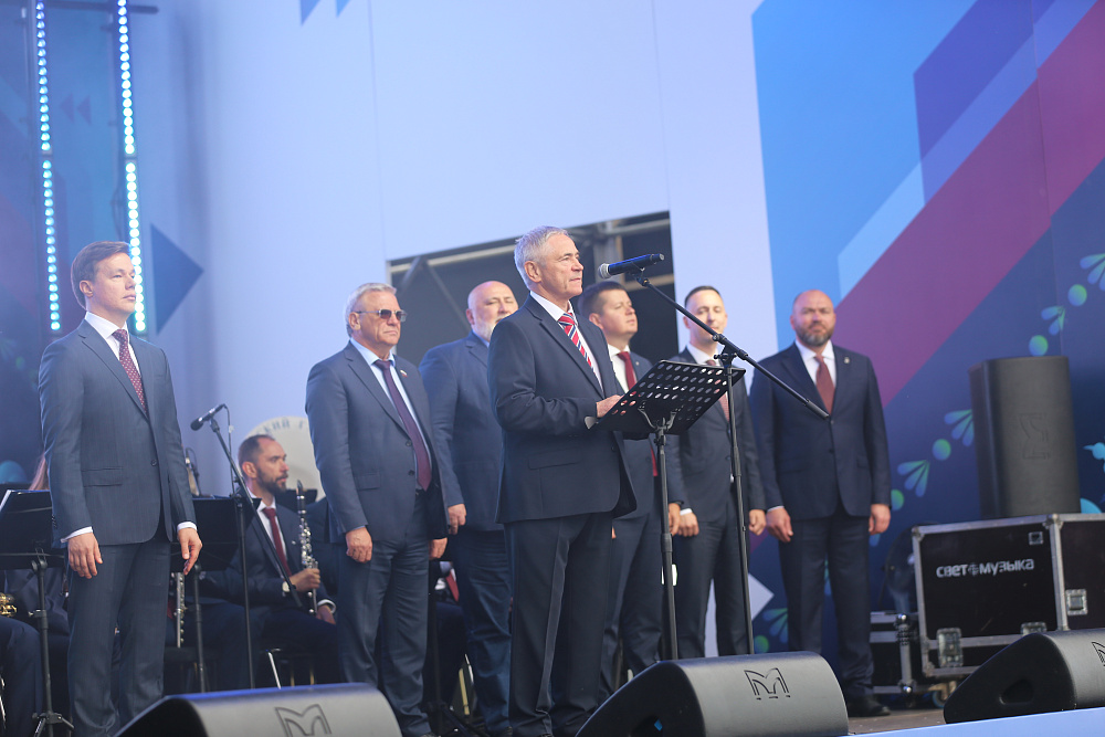 Под гимн российской федерации в исполнении губернского оркестра флаг был торжественно поднят.