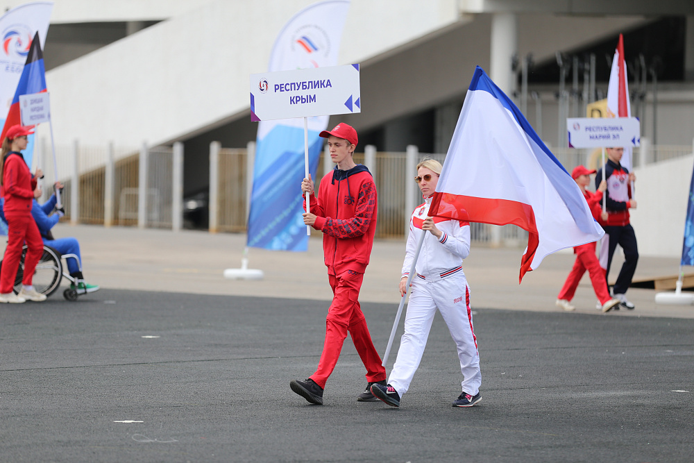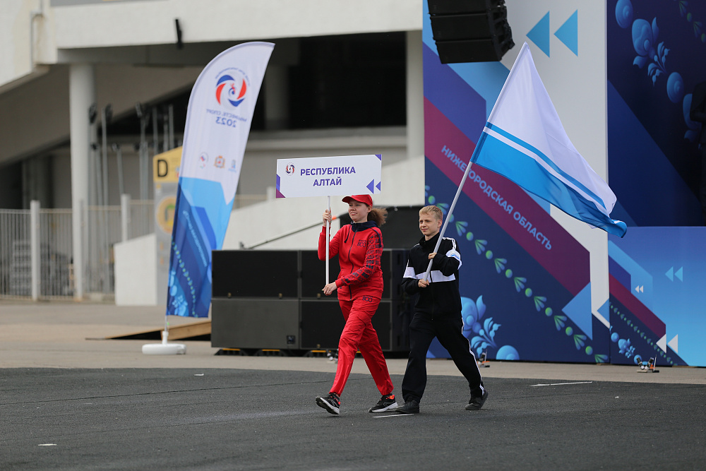 Главной частью церемонии стал парад флагов регионов-участниц соревнований. В параде приняли участие команды 54 субъектов нашей страны.