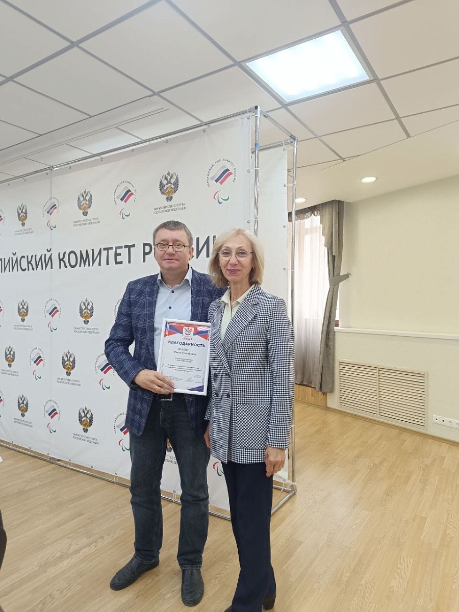 Президент Федерации Андрей Строкин наградил Благодарностью Федерации ПОДА за большой вклад в развитие спорта лиц с поражением опорно-двигательного аппарата в Российской Федерации и в связи с достижением 15-летнего трудового стажа в сфере физической культуры и спорта сотрудников Федерации — Р.Г. Оганесян и В.И. Любазнову.