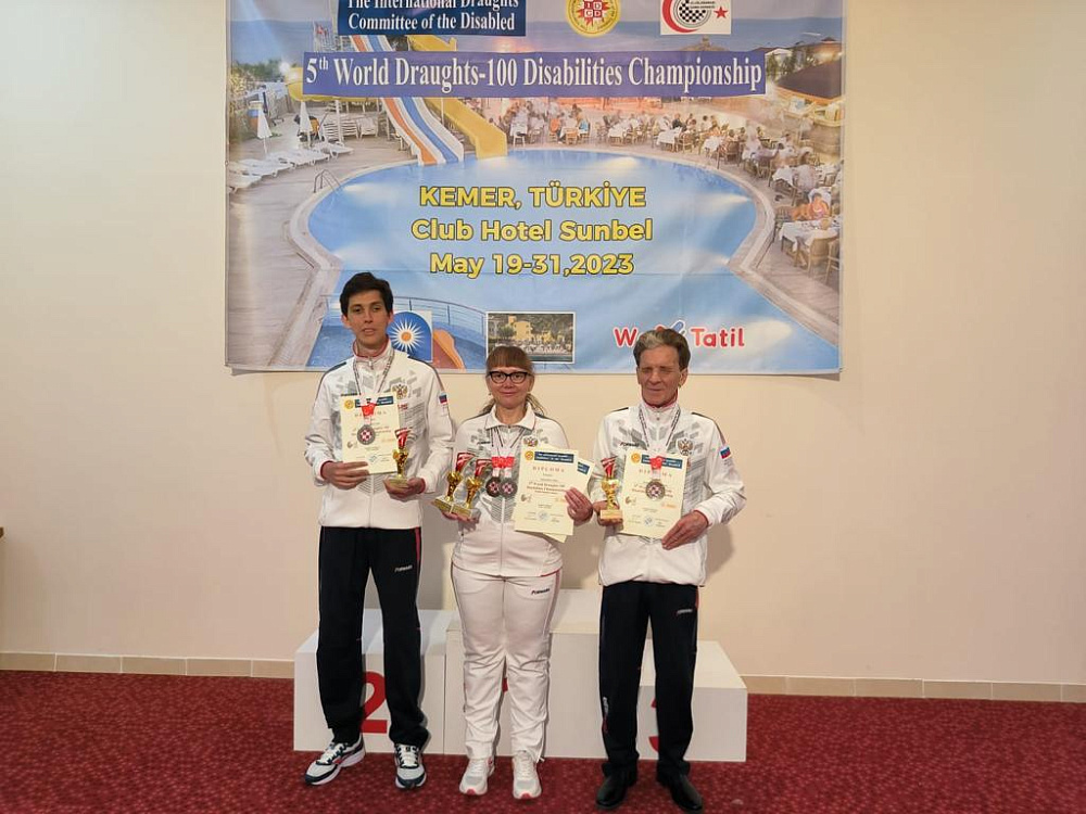 4 золотые, 2 серебряные и 5 бронзовых медалей завоевали российские спортсмены с поражением ОДА на чемпионате и первенстве мира по шашкам спорта лиц с ПОДА и спорта слепых