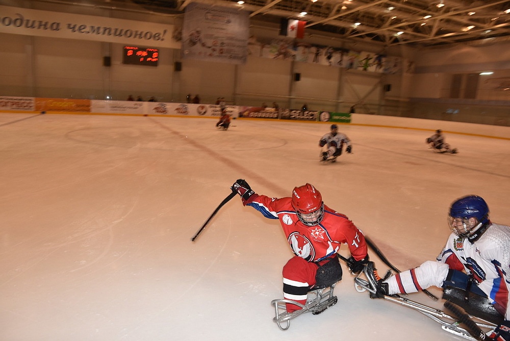 Президент Всероссийской федерации спорта лиц с поражением опорно-двигательного аппарата, 5-кратный чемпион Паралимпийских игр Андрей Строкин, почетный президент Федерации Лев Селезнев в г. Ижевске (Удмуртская Республика) приняли участие в церемонии открытия и просмотре соревнований Всероссийского турнира по хоккею-следж, посвященного памяти Виктора Кузнецова.