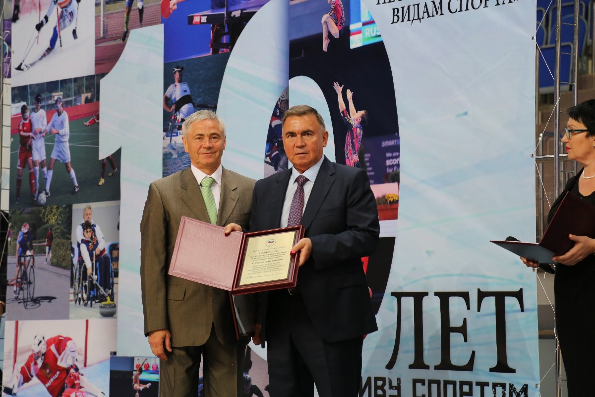 Президент Всероссийской федерации спорта лиц с поражением опорно-двигательного аппарата, 5-кратный чемпион Паралимпийских игр Андрей Строкин, первый вице-президент Федерации Павел Рожков в г. Раменском (Московская область) во Дворце спорта «Борисоглебский» приняли участие в торжественных мероприятиях, приуроченных к 10-летию со дня основания ГБУ МО "Центр спортивной подготовки по паралимпийским, сурдлимпийским и неолимпийским видам спорта" .