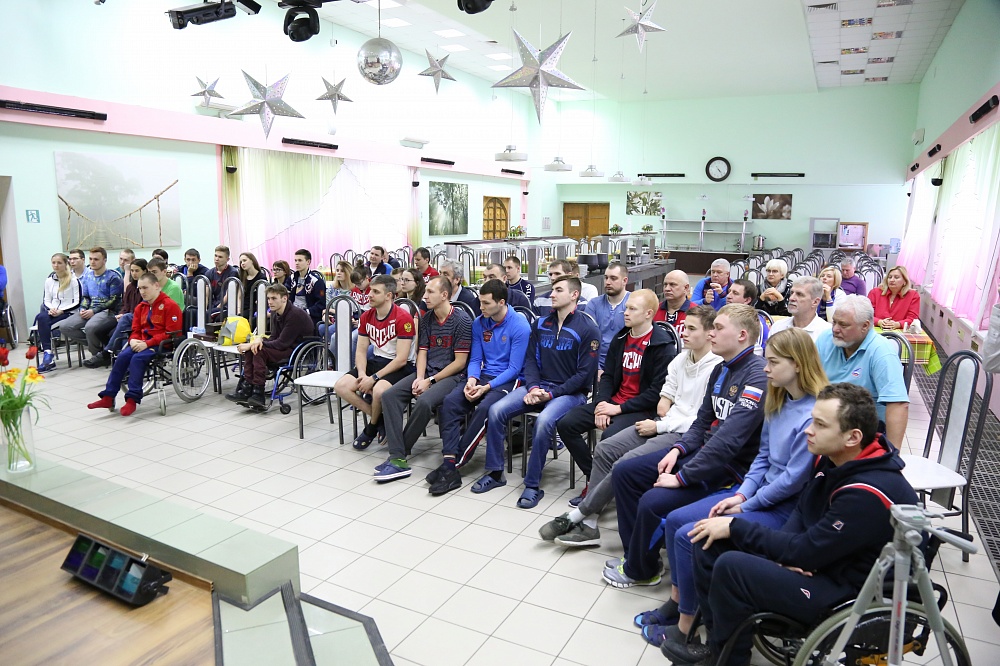 Президент Всероссийской Федерации спорта лиц с ПОДА, 5-кратный чемпион Паралимпийских игр, Андрей Строкин, первый вице-президент Федерации Павел Рожков, встретились со спортсменами, тренерами и специалистами сборной команды России по плаванию спорта лиц с поражением опорно-двигательного аппарата, находящихся на тренировочном мероприятии в СОК «Сатурн» г. Раменского (Московской области).