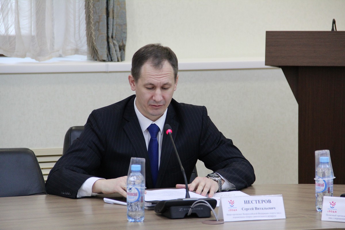 По вопросу повестки дня «О ходе подготовки к 20-летию Общероссийской общественной организации «Всероссийская Федерация спорта лиц с поражением опорно-двигательного аппарата» доложил вице-президент Федерации, руководитель рабочей группы по организации и проведению 20-летия Общероссийской общественной организации «Всероссийская Федерация спорта лиц с поражением опорно-двигательного аппарата» Сергей Нестеров.