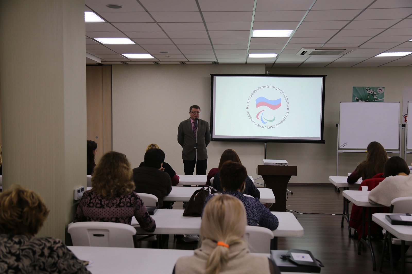 Вице-президент Всероссийской федерации спорта лиц с поражением опорно-двигательного аппарата, 5-кратный чемпион Паралимпийских игр, Кандидат педагогических наук Андрей Строкин в офисе ПКР выступил с приветственным словом перед слушателями программы дополнительного образования ПКР по экспертной оценке состояния доступности приоритетных объектов и услуг в приоритетных сферах жизнедеятельности инвалидов и других маломобильных групп населения.