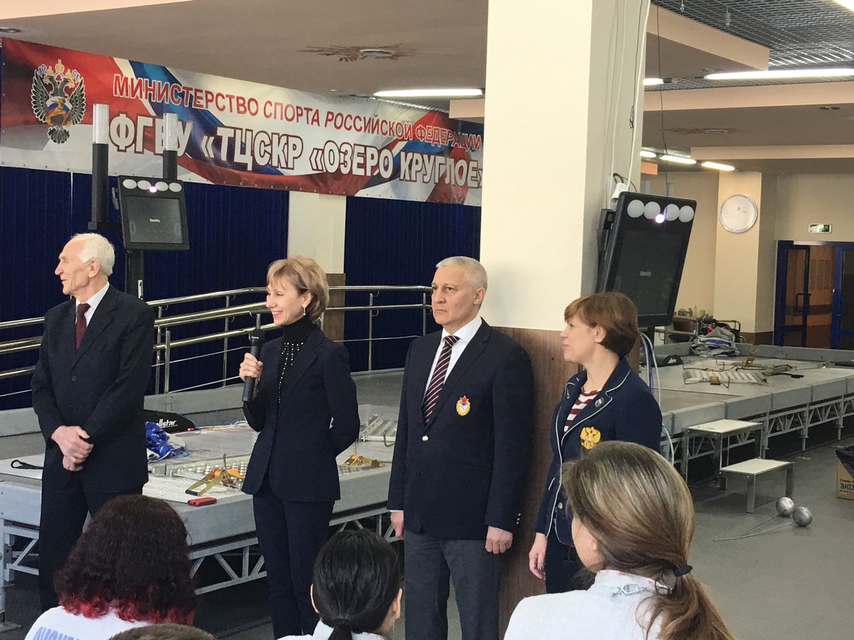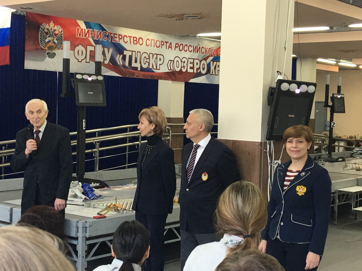 Вице-президент Всероссийской федерации спорта лиц с поражением опорно-двигательного аппарата Анатолий Царик, генеральный директор Всероссийской федерации спорта лиц с поражением опорно-двигательного аппарата Раиса Оганесян в д. Агафониха (Московская область) в Тренировочном центре сборных команд России «Озеро Круглое» принял участие в торжественной церемонии открытия чемпионата России по фехтованию на колясках.
