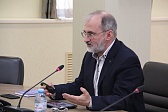 По первому вопросу повестки дня доктор исторических наук, профессор, Декан факультета истории, политологии и права Государственного университета просвещения, профессор кафедры государственной политики Московского государственного университета им. М.В. Ломоносова Вардан Багдасарян выступил с докладом «О патриотическом воспитании в сфере физической культуры и спорта». В обсуждении данного вопроса приняли участие старшие тренеры и начальники спортивных сборных команд России Федерации по спорту лиц с поражением опорно-двигательного аппарата, спорта слепых и спорта лиц с интеллектуальными нарушениями, а также члены Исполкома Паралимпийского комитета России, сотрудники Паралимпийского комитета России и Всероссийских федераций, развивающих адаптивные виды спорта.