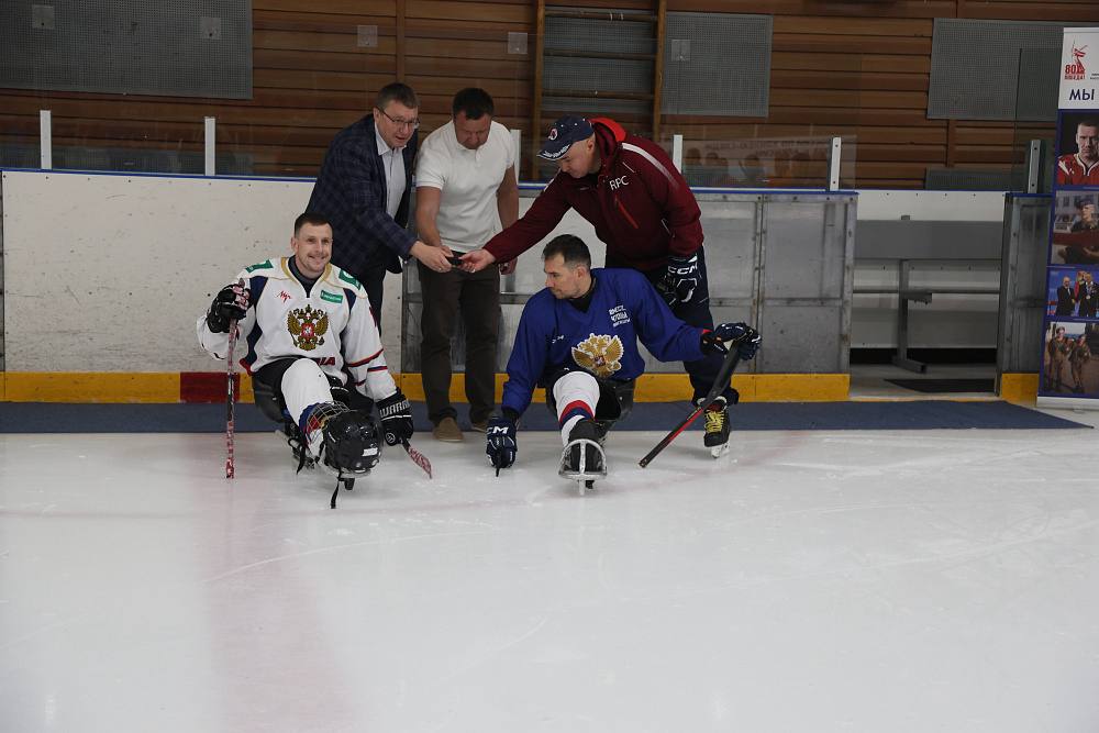 Андрей Строкин принял участие в просмотре контрольной игры на учебно-тренировочном сборе ветеранов СВО и сборной команды России по хоккею-следж