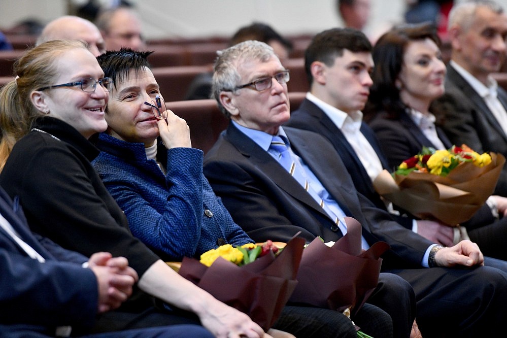 Член сборной команды России по лыжным гонкам и биатлону спорта лиц с поражением опорно-двигательного аппарата, трехкратная чемпионка, двукратный серебряный призёр зимних Паралимпийских игр 2018 года Екатерина Румянцева поднялась на сцену в сопровождении легендарного тренера Ирины Громовой, воспитавшей огромное количество знаменитых паралимпийцев.