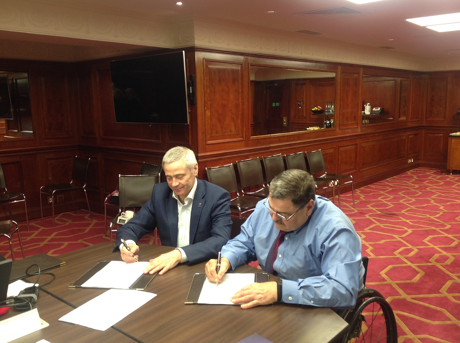 П.А. Рожков и президент IWAS Пол де Пас подписали дополнительное соглашение к основному соглашению о проведении Всемирных игр IWAS, которые пройдут в г. Сочи с 26 сентября по 3 октября 2015 года