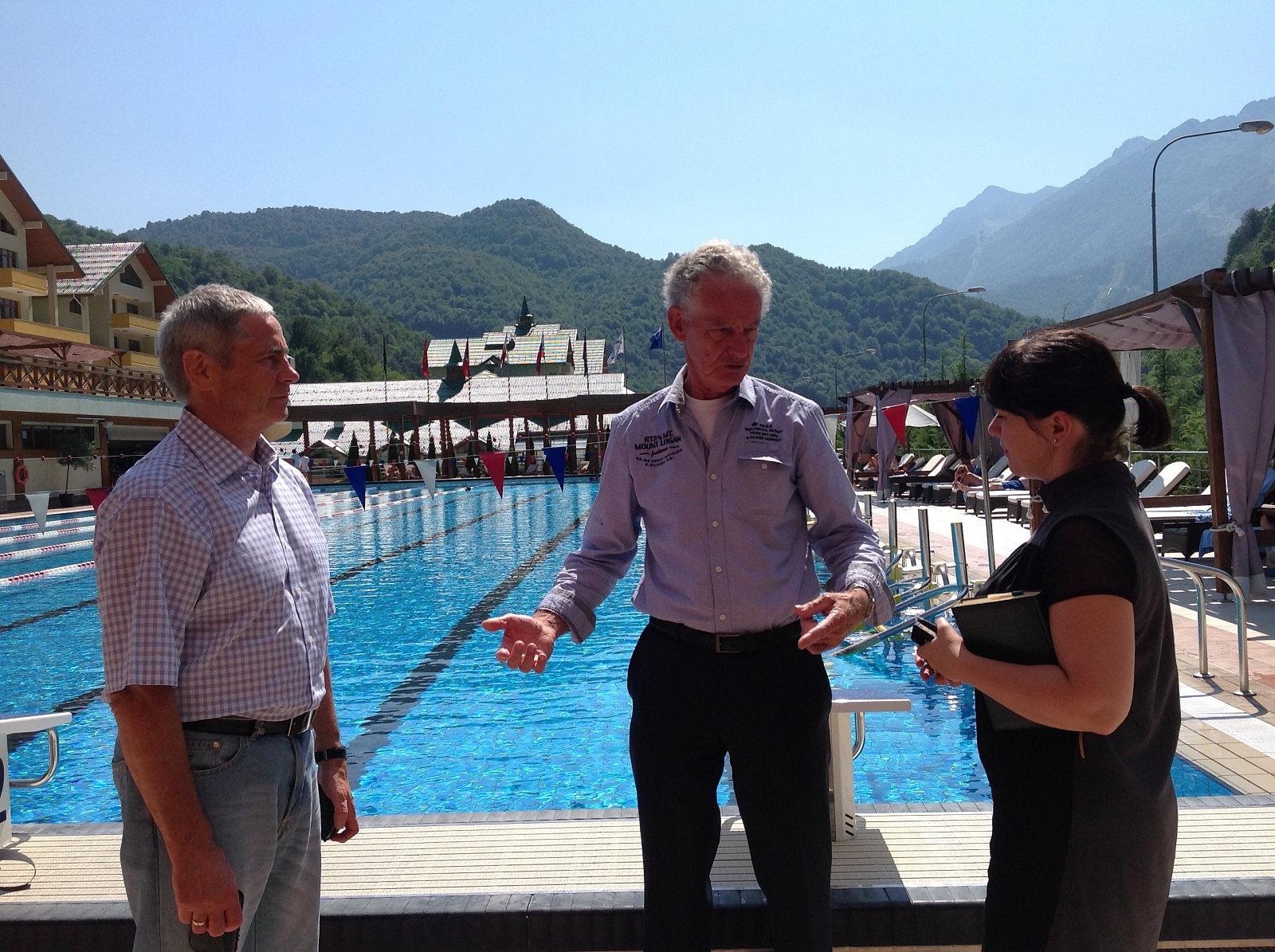 П.А. Рожков и технический менеджер по Играм IWAS Ян Боквик в г. Сочи в рамках второго дня инспекционного визита осмотрели места проведения соревнований по плаванию и размещения пловцов