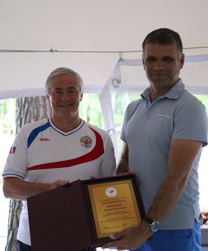 В рамках посещения соревнований глава ПКР вручил руководителю парк-отеля и яхт-клуба «Березки», Заслуженному мастеру спорта России, чемпиону мира Сергею Волчкову благодарность Паралимпийского комитета России за поддержку сборной команды России по парусному спорту лиц с поражением опорно-двигательного аппарата, а также содействие в организации тренировочного и соревновательного процессов команды.