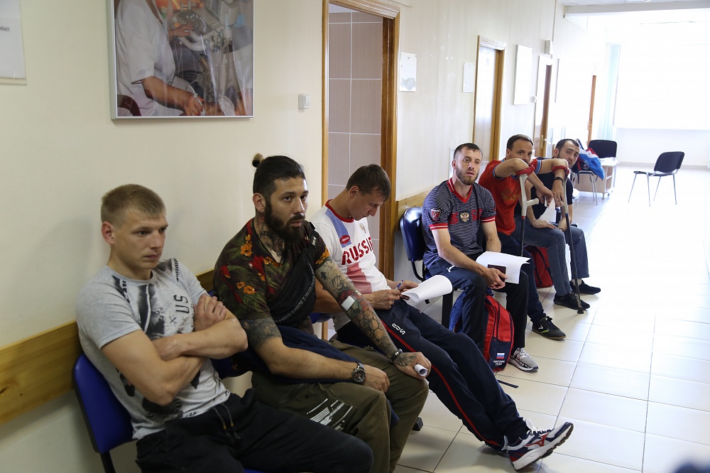 Первый вице-президент Всероссийской федерации спорта лиц с поражением опорно-двигательного аппарата Павел Рожков, вице-президент Федерации, начальник сборной команды России по футболу ампутантов Сергей Нестеров в г. Москве провели встречу со спортсменами сборной команды России по футболу ампутантов, проходящими углубленное медицинское обследование в Отделении спортивной медицины паралимпийских видов спорта Федерального научно-клинического центра спортивной медицины и реабилитации ФМБА России.