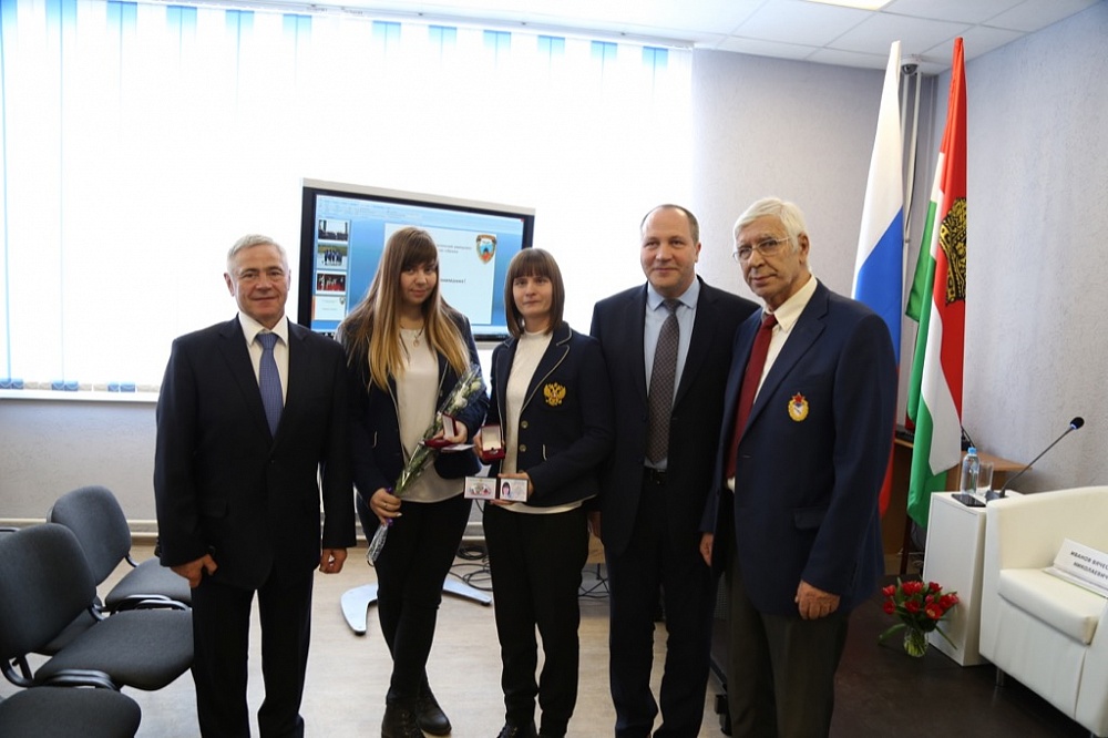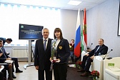 В заключении заседания Павел Рожков вручил знаки Заслуженного мастера спорта Российской Федерации и удостоверения к ним спортсменкам Калужской области - членам сборной команды России по голболу спорта слепых, ставшим в 2018 году чемпионками мира Анастасии Мазур и Евгении Семиной.