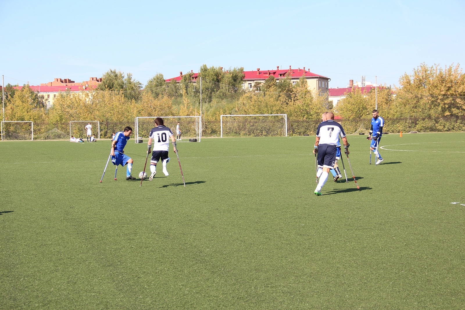 Футбол ампутантов не входит в программу Паралимпийских летних игр. Полевые игроки передвигаются по полю при помощи костылей. Игра ведется на уменьшенных размерах площадки: 60 х 40 метров. Главным отличием мини-футбола и футбола ампутантов является количество игроков: вместо пяти спортсменов в команде, как в мини-футболе, в футболе ампутантов играет по шесть в поле и вратарь.