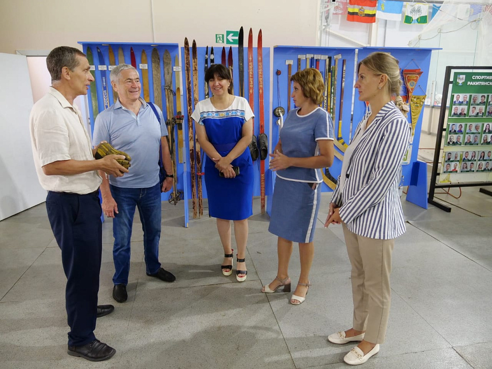 Директор Ледовой арены Василий Черномуров рассказал об организации физкультурно-спортивной работы и показал музей, расположенный в спортивном учреждении. В экспозиции представлены экспонаты, позволяющие ознакомиться с историей спорта - раритетные кубки, медали, ретро-форма, уникальные документы, фотографии.
