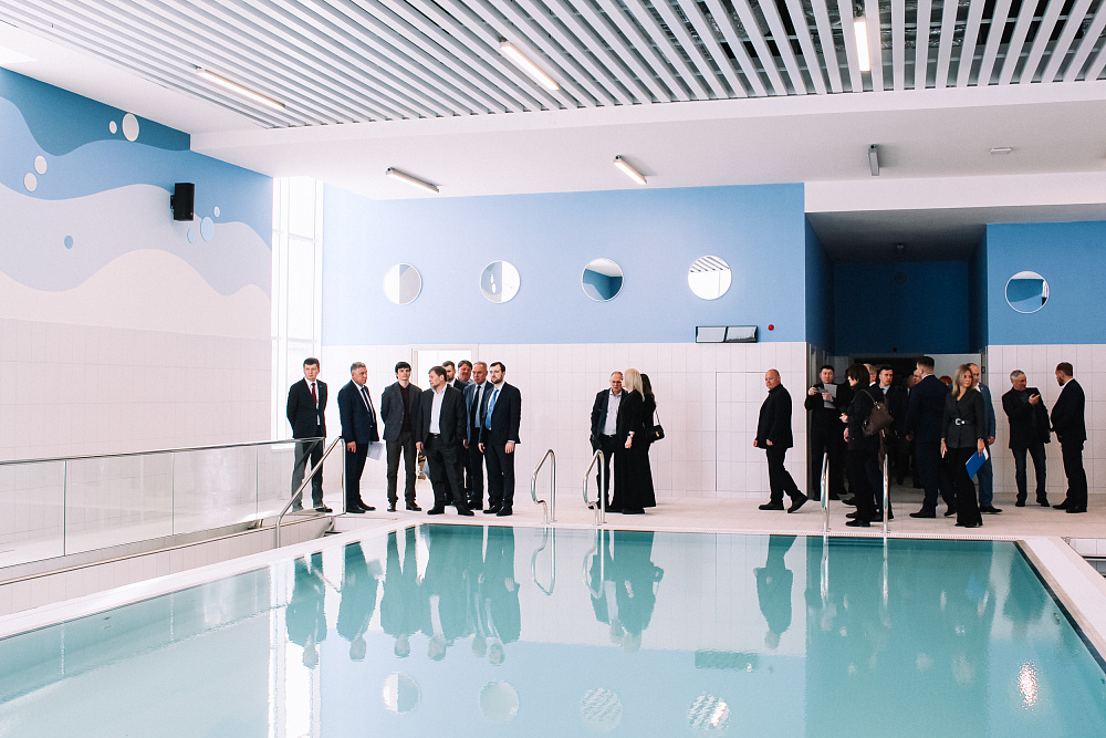 Делегация Минспорта России в сопровождении первого заместителя губернатора Новгородской области Александра Дронова, заместителя председателя Правительства области Елены Кириловой и Министра спорта Нижегородской области Кристины Михайловой осмотрели многофункциональный спортивный центр.
