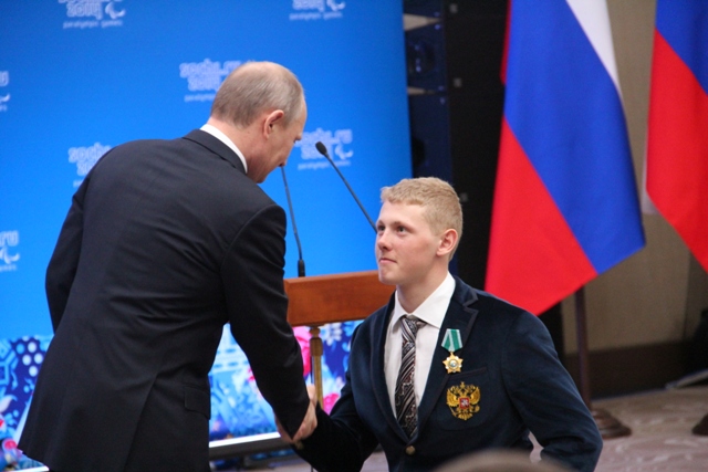Президент Российской Федерации В. В. Путин в г. Сочи встретился с чемпионами и призерами XI Паралимпийских зимних игр 2014 г. спорта лиц с ПОДА и вручил им государственные награды РФ