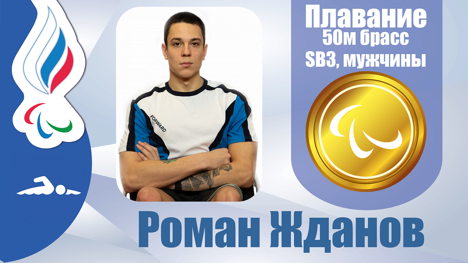 Роман Жданов в брассе на дистанции 50 метров завоевал золотую медаль и установил мировой рекорд в классе SB3!