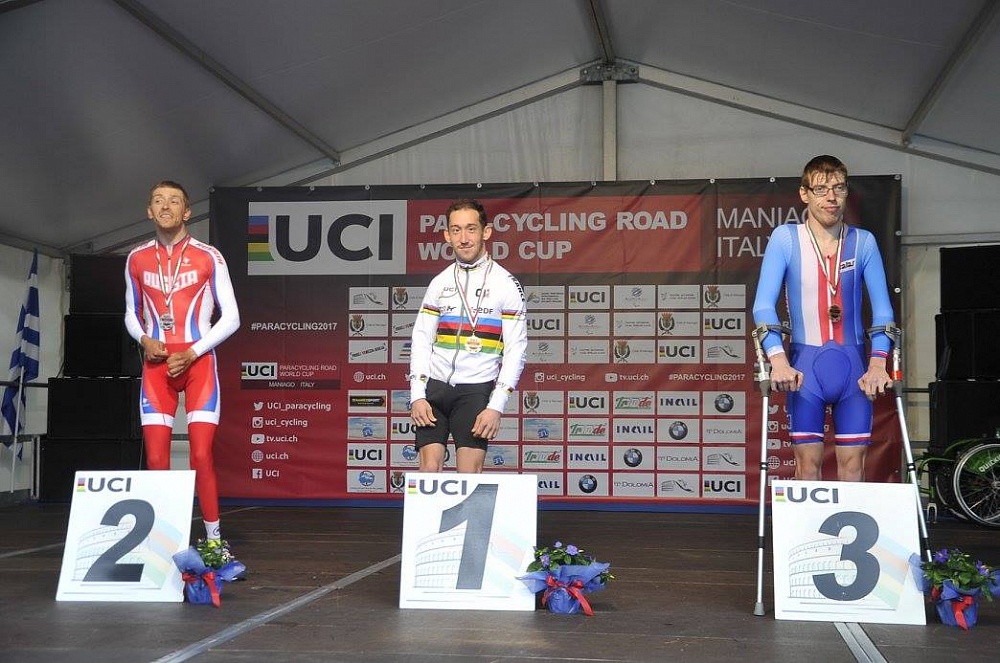 Спортсмены сборной команды России выиграли 2 золотые медали, 6 серебряных и 1 бронзовую на первом этапе Кубка мира по велоспорту среди лиц с поражением опорно-двигательного аппарата завершившемся в г. Маниаго (Италия).