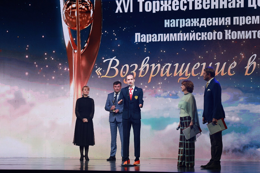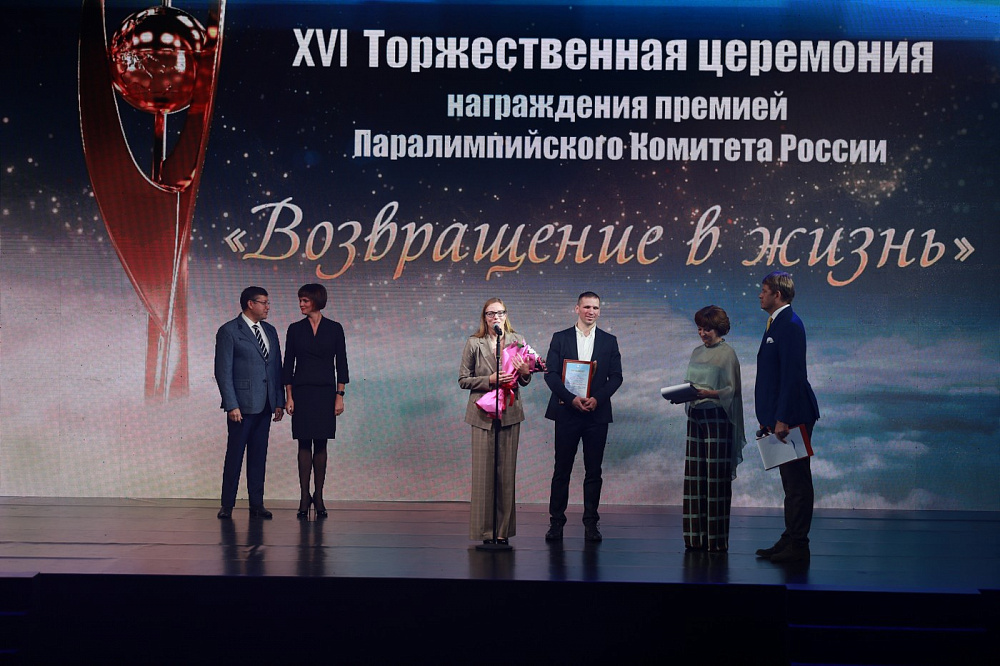 Награду вручали Исполняющий обязанности Президента Паралимпийского комитета России Павел Рожков и вице-президент Корпорации «Синергия» Кристина Колесникова.