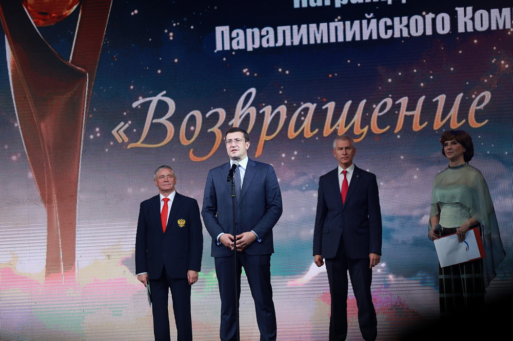 «Мы живем в одном обществе. И очень важно, чтобы все понимали свою ответственность. И государство, и общественные организации, и бизнес — все должны содействовать развитию паралимпийского движения, ведь за ним стоят люди, своим примером показавшие умение преодолевать жизненные сложности. Это еще раз доказали победы наших паралимпийцев в Токио, в основе которых — колоссальный труд и любовь к своему делу, уважение к тренерам и преданность родной стране» - сказал Министр спорта.С приветственным словом участникам мероприятия выступил Губернатор Нижегородской области Глеб Никитин. В своем выступлении он поблагодарил ПКР за оказанную честь принимать церемонию: