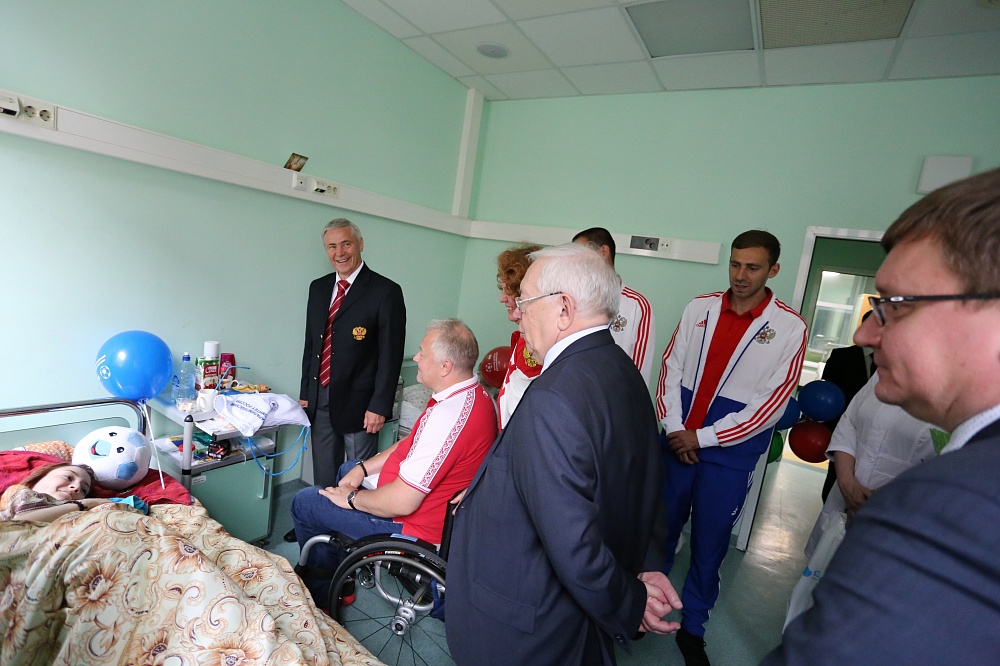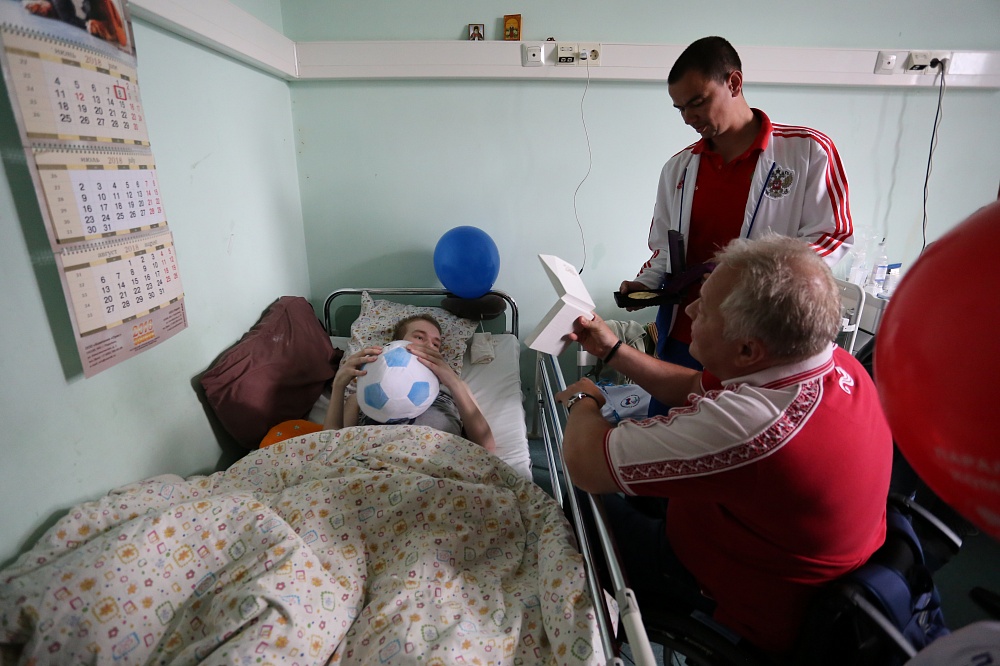 В завершении праздника руководители Федерации, спортсмены и тренеры вручили детям сувениры и подарки на память о встрече: вымпелы, значки, детские книги «Звезды паралимпийского спорта», игрушечные футбольные мячи, альбомы для рисования и многое другое, а также вместе с Леонидом Рошалем и Светланой Валиуллиной посетили пациентов НИИ с тяжелыми травмами. Они пожелали детям, бодрости духа, веры в себя, скорейшего выздоровления и вручили памятные подарки.