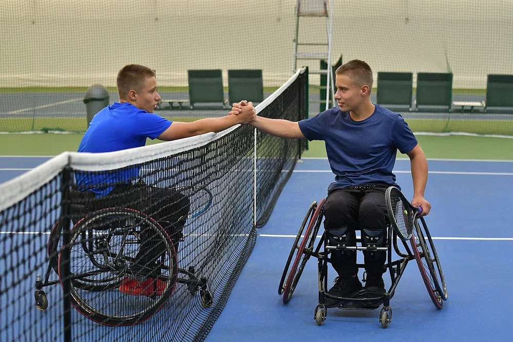 Теннис на колясках — включен в программу Паралимпийских игр. В игре используются стандартные для тенниса площадка и инвентарь, основные отличия в правилах заключаются в том, что удар по мячу можно наносить не только после первого, но и после второго отскока мяча о поверхность, при этом второй отскок может быть за пределами корта. В категории «квады» выступают спортсмены с поражением шейного отдела позвоночника или существенной потерей функции, по крайней мере, в одной верхней конечности. Некоторым игрокам разрешается использовать инвалидные коляски с электрическим приводом. Развитием вида спорта занимается Международная федерация тенниса.