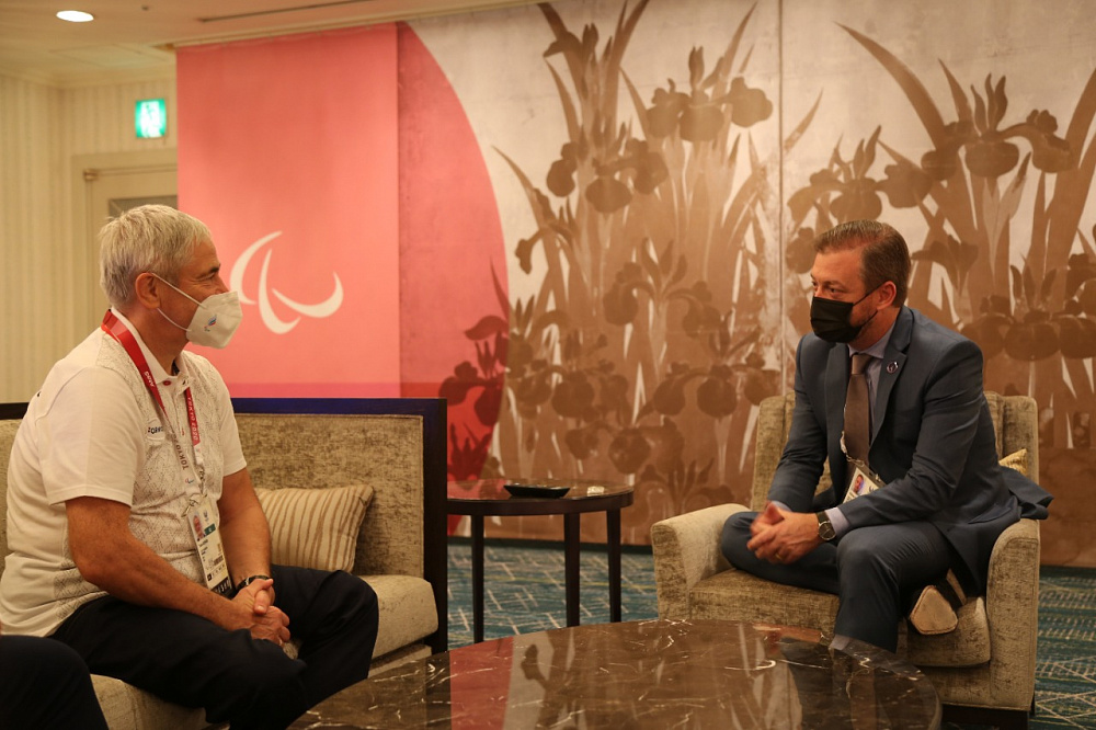 "Сегодня в офисе МПК на XVI Паралимпийских играх в Токио прошла рабочая встреча с президентом Международного паралимпийского комитета Эндрю Парсонсом" - рассказал шеф миссии команды ПКР Рожков.