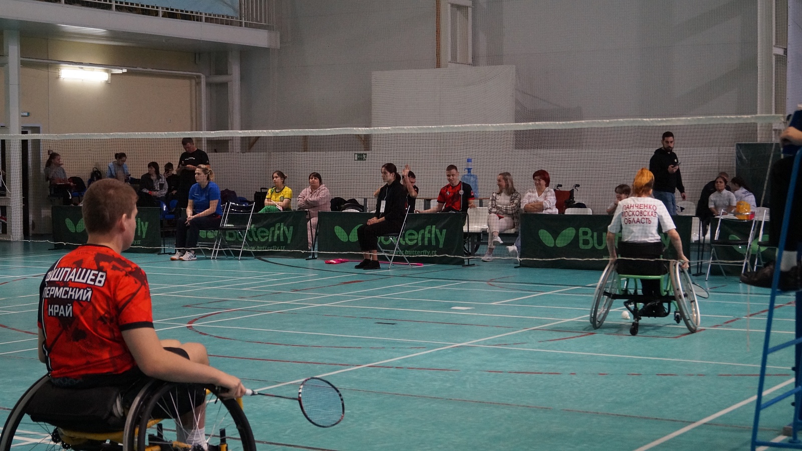 Соревнования по бадминтону спорта лиц с поражением опорно-двигательного аппарата проходят среди спортсменов 6 спортивно-функциональных классов – WH1 и WH2 – спортсмены-колясочники, SL3, SL4, SU5 – спортсмены, выступающие «стоя», SS6 – спортсмены с маленьким ростом. Первые соревнования прошли в 1995 году в Англии. На XVI Паралимпийских летних игр в г. Токио (Япония) бадминтон был впервые представлен в спортивной программе. Спортсмены разыграли 14 комплектов медалей. Российскую команду представляла Татьяна Гуреева. На XVII Паралимпийских играх 2024 года в Париже будут разыграны 16 комплектов медалей.