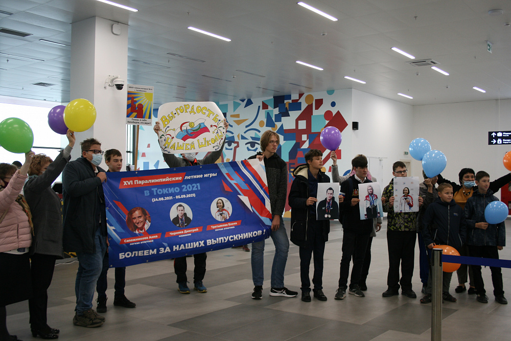 В Международном аэропорту Челябинска имени И.В. Курчатова спортсменов торжественно встретили Начальник управления спорта Министерства по физической культуре и спорту Челябинской области Анна Кодина, директор регионального центра спортивной подготовки по адаптивным видам спорта Челябинской области Павел Титов, председатель регионального отделения общероссийской общественной организации «Всероссийская федерация спорта лиц с поражением ОДА» Вадим Алешкин, председатель Регионального отделения Паралимпийского комитета в Челябинской области Анатолий Халабов и директор регионального центра по плаванию «Аквамарин» Олег Симонов.