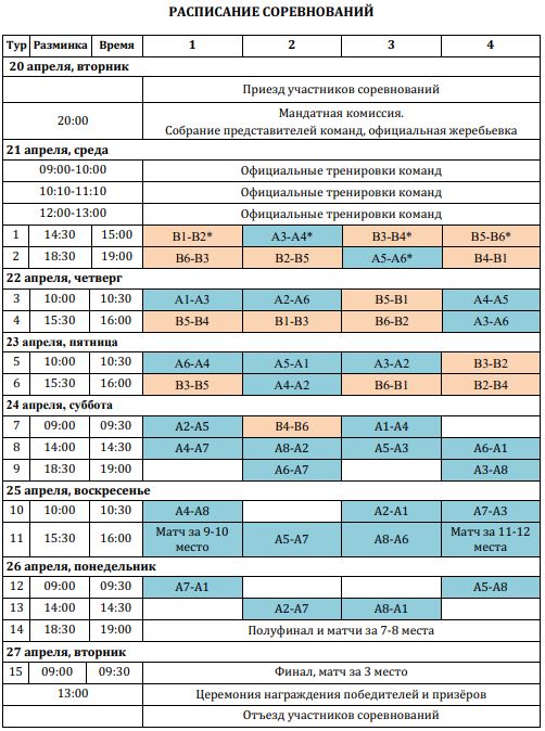 По регламенту соревнований на первом этапе команды играют в группах (по 6 в группе А и В) по круговой системе.