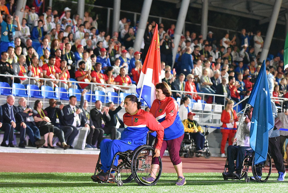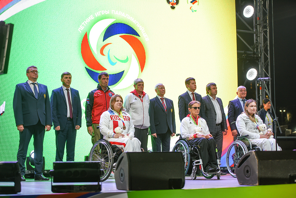 «От имени Министерства спорта Российской Федерации и себя лично приветствую участников, организаторов и гостей церемонии закрытия Летних Игр Паралимпийцев «Мы вместе. Спорт»!