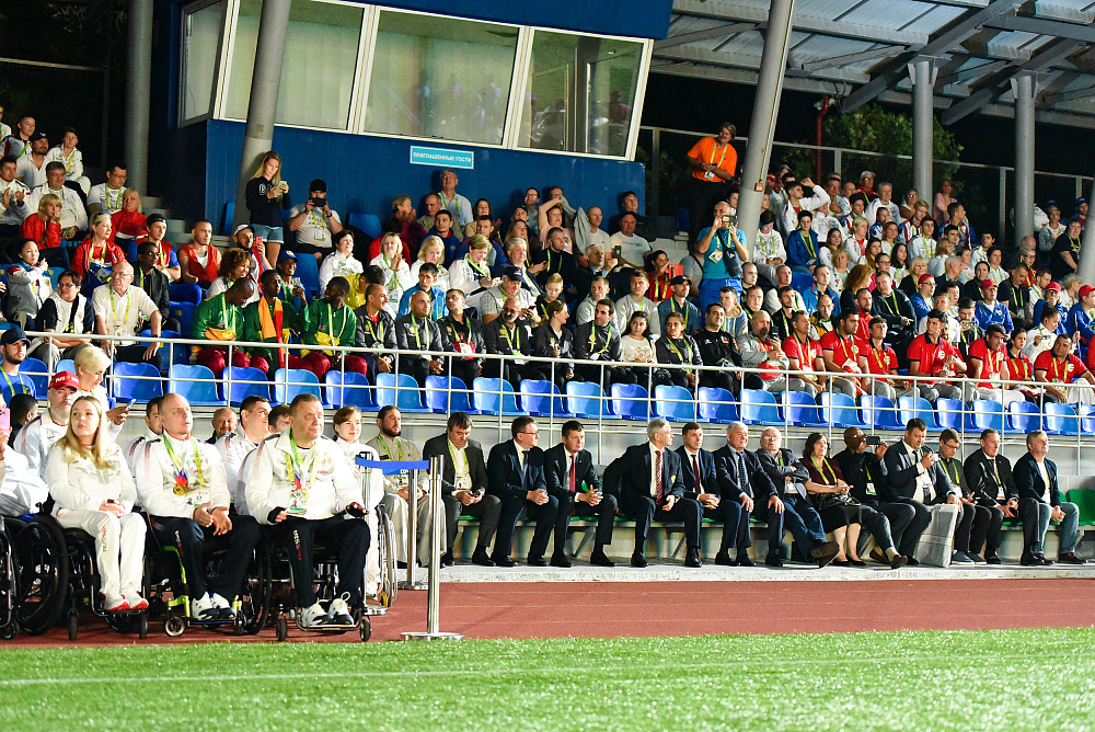 От имени Паралимпийского комитета России хочу поблагодарить всех, кто внес вклад в успешное проведение этих соревнований - руководителей и сотрудников Министерства спорта России, Администрации Краснодарского края, Министерства спорта Краснодарского края, Администрации города Сочи, Департамента физической культуры и спорта администрации города Сочи, субъектов Российской Федерации, Компании ОАО «Российские железные дороги», а также федераций спорта лиц с инвалидностью.