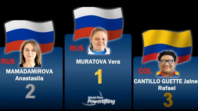 Муратова набрала 343,5 балла, включая лучший подъем 130 кг, а Перес в финале заняла 8 место, набрав 142,5 балла.