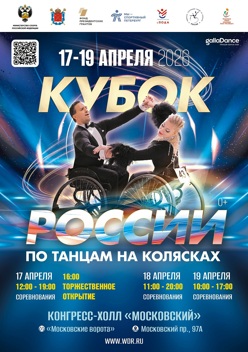 В период с 15 по 21 апреля в Санкт-Петербурге в конгресс-холле «Московский» пройдет кубок России по танцам на колясках.